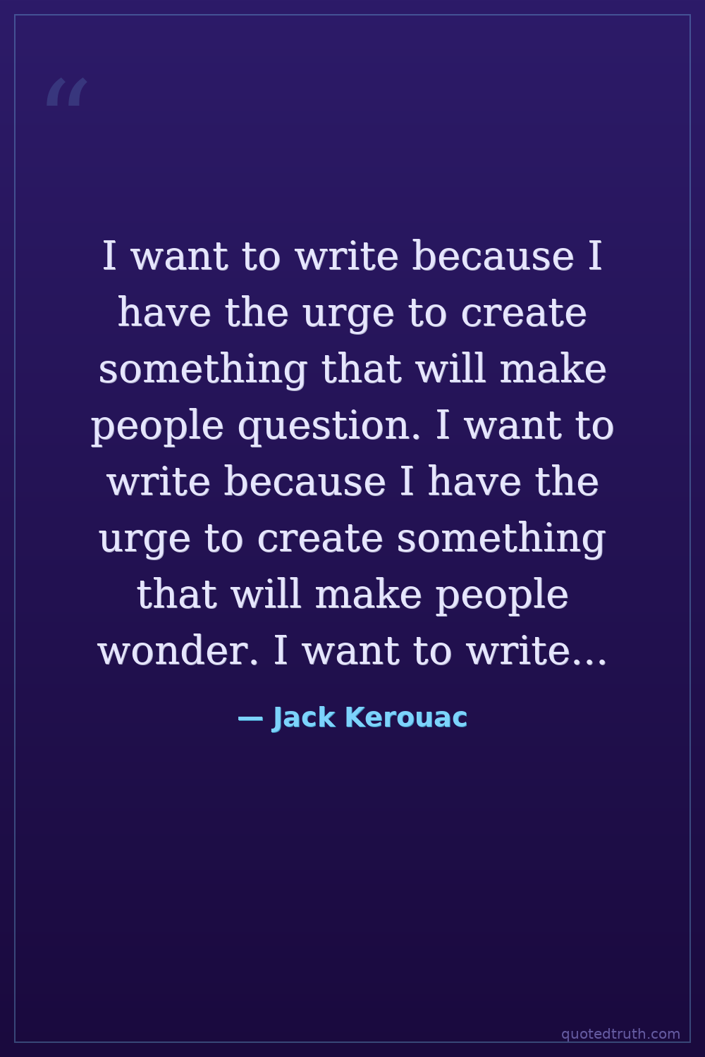 I want to write because I have the urge to create something that will make people question. I want to write because I have the urge to create something that will make people wonder. I want to write because I have the urge to create something that will make people dream.