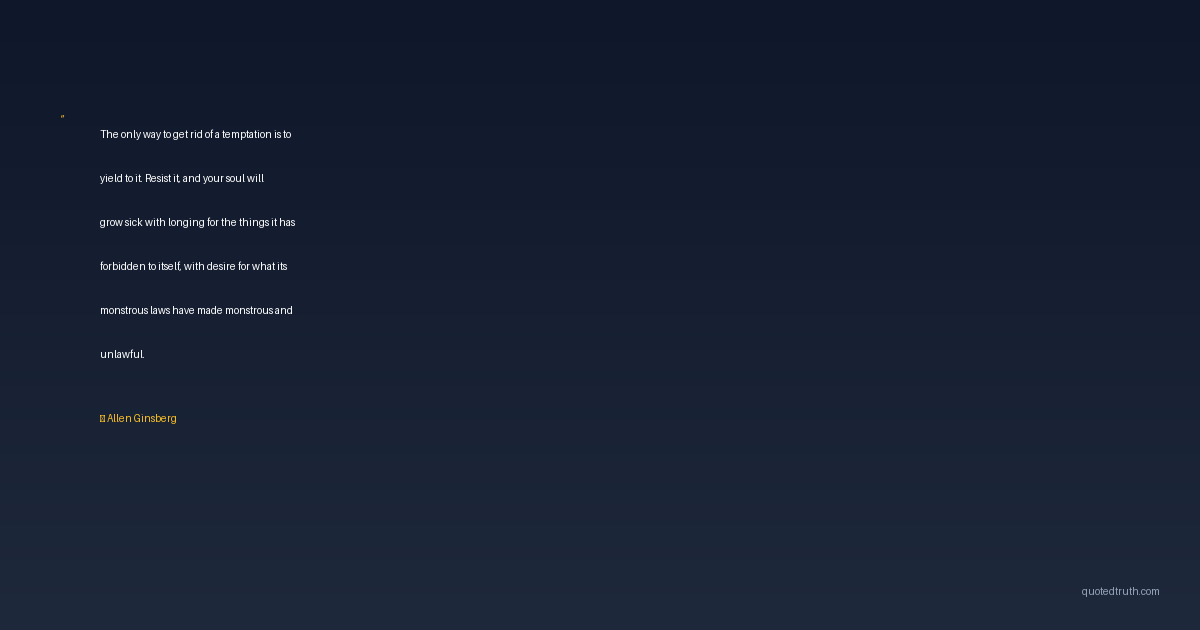 The only way to get rid of a temptation is to yield to it. Resist it, and your soul will grow sick with longing for the things it has forbidden to itself, with desire for what its monstrous laws have made monstrous and unlawful.
