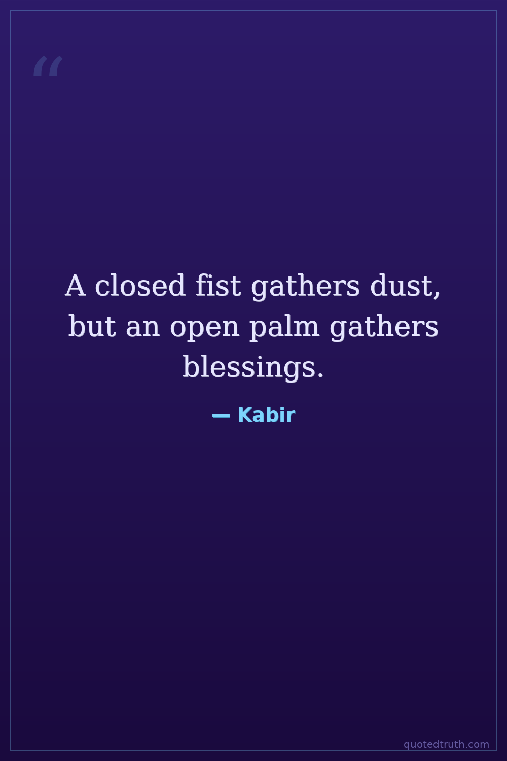 A closed fist gathers dust, but an open palm gathers blessings.