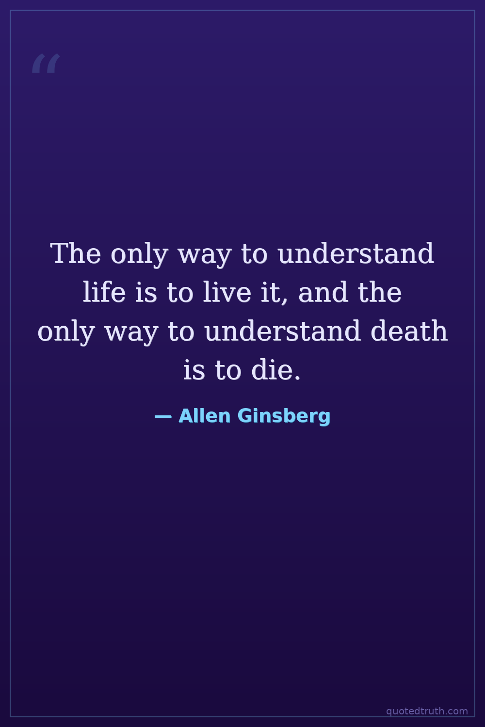 The only way to understand life is to live it, and the only way to understand death is to die.