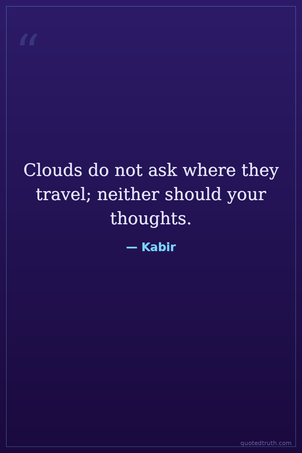 Clouds do not ask where they travel; neither should your thoughts.