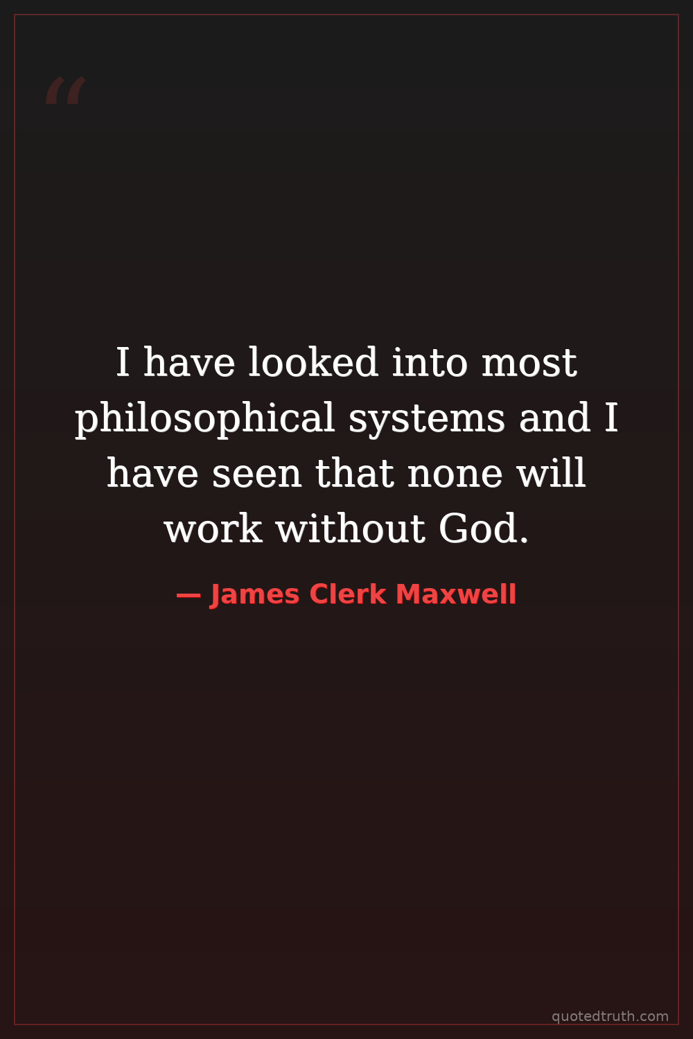 I have looked into most philosophical systems and I have seen that none will work without God.