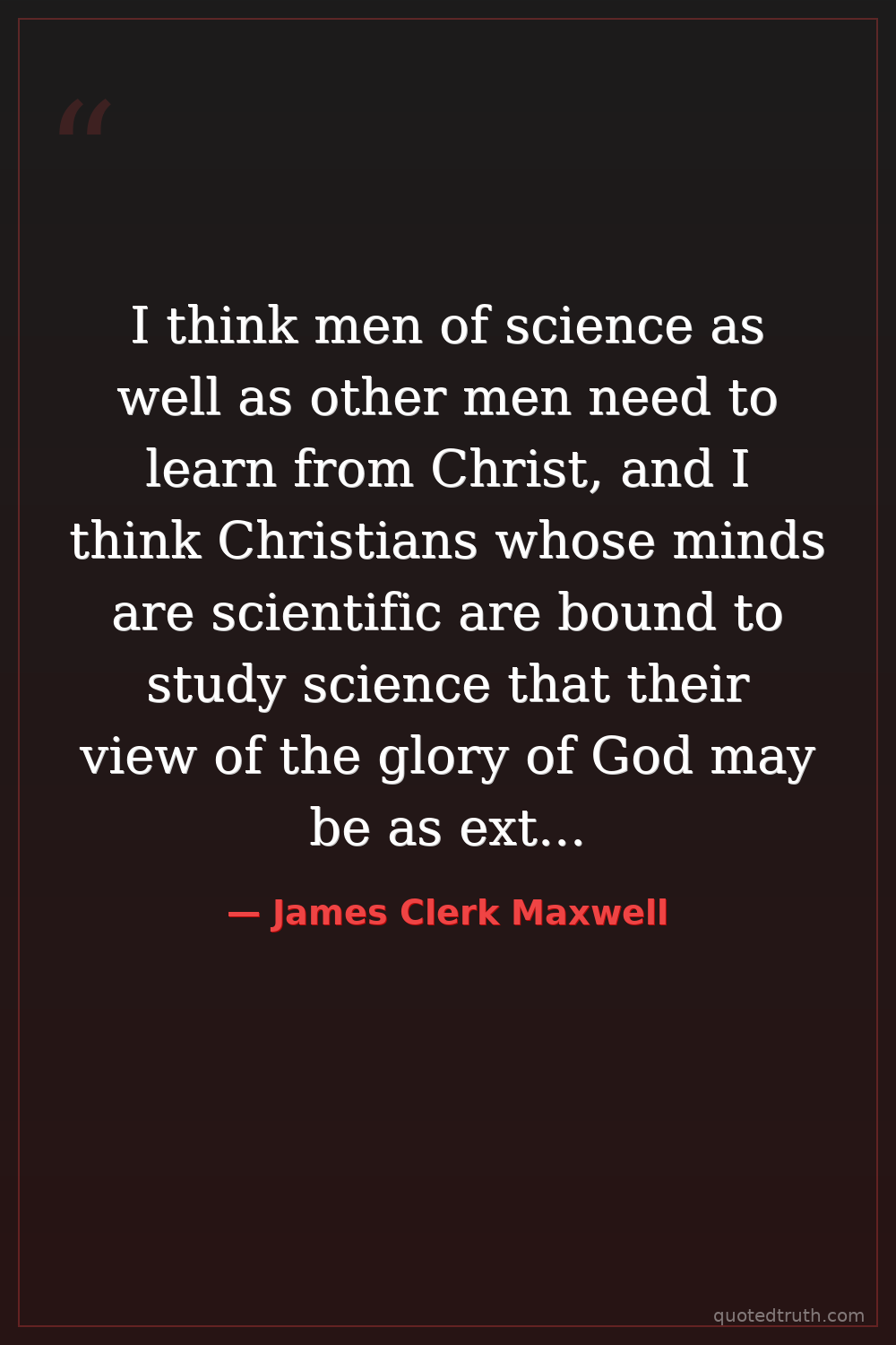 I think men of science as well as other men need to learn from Christ, and I think Christians whose minds are scientific are bound to study science that their view of the glory of God may be as extensive as their being is capable.