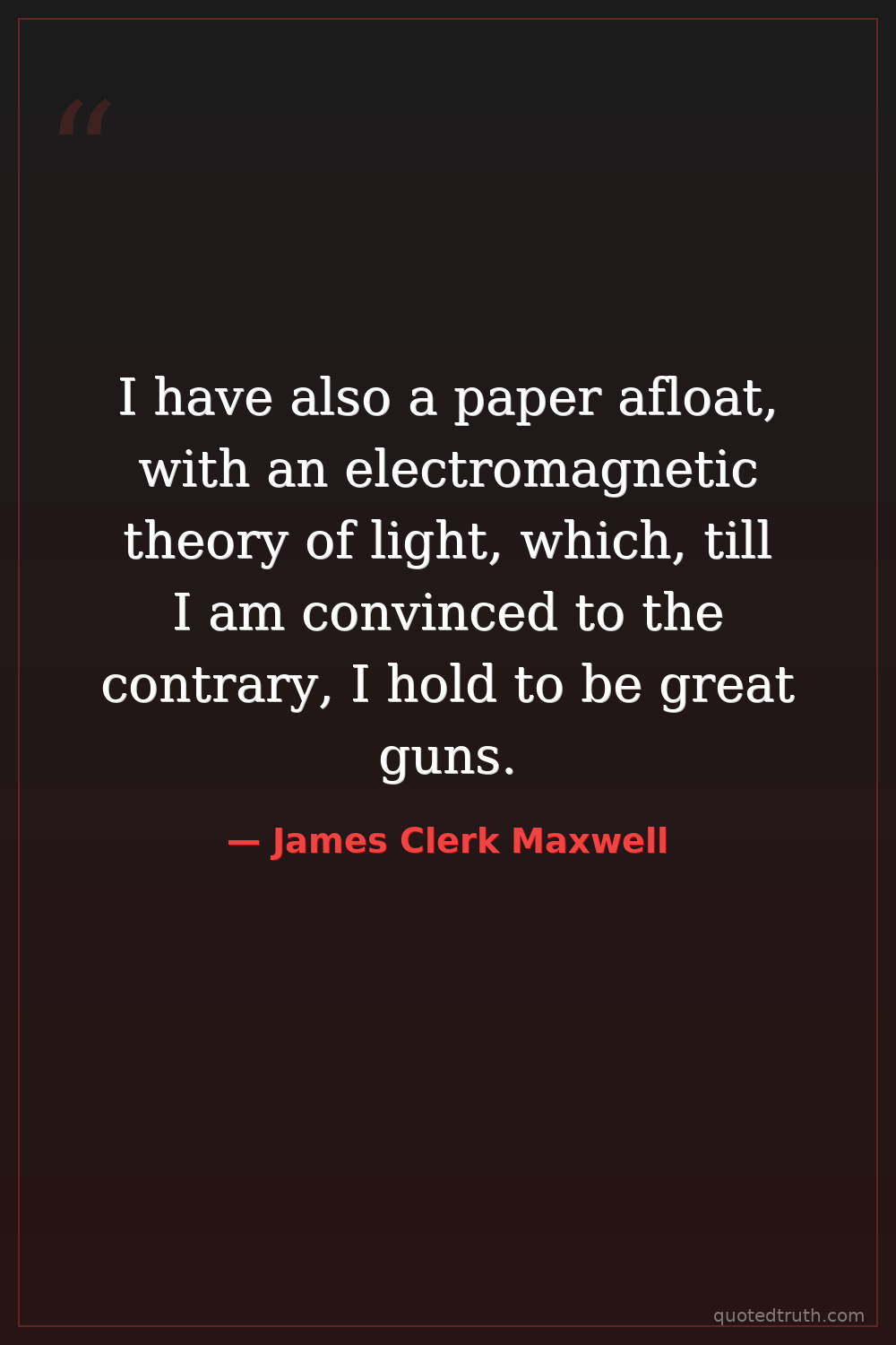 I have also a paper afloat, with an electromagnetic theory of light, which, till I am convinced to the contrary, I hold to be great guns.