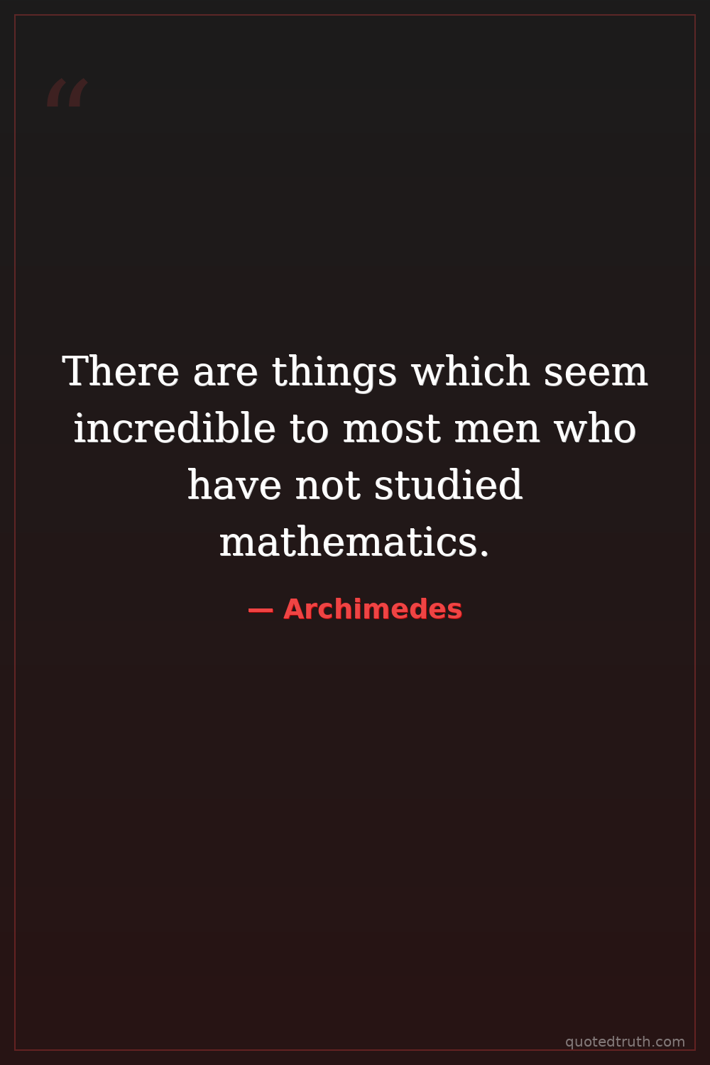 There are things which seem incredible to most men who have not studied mathematics.
