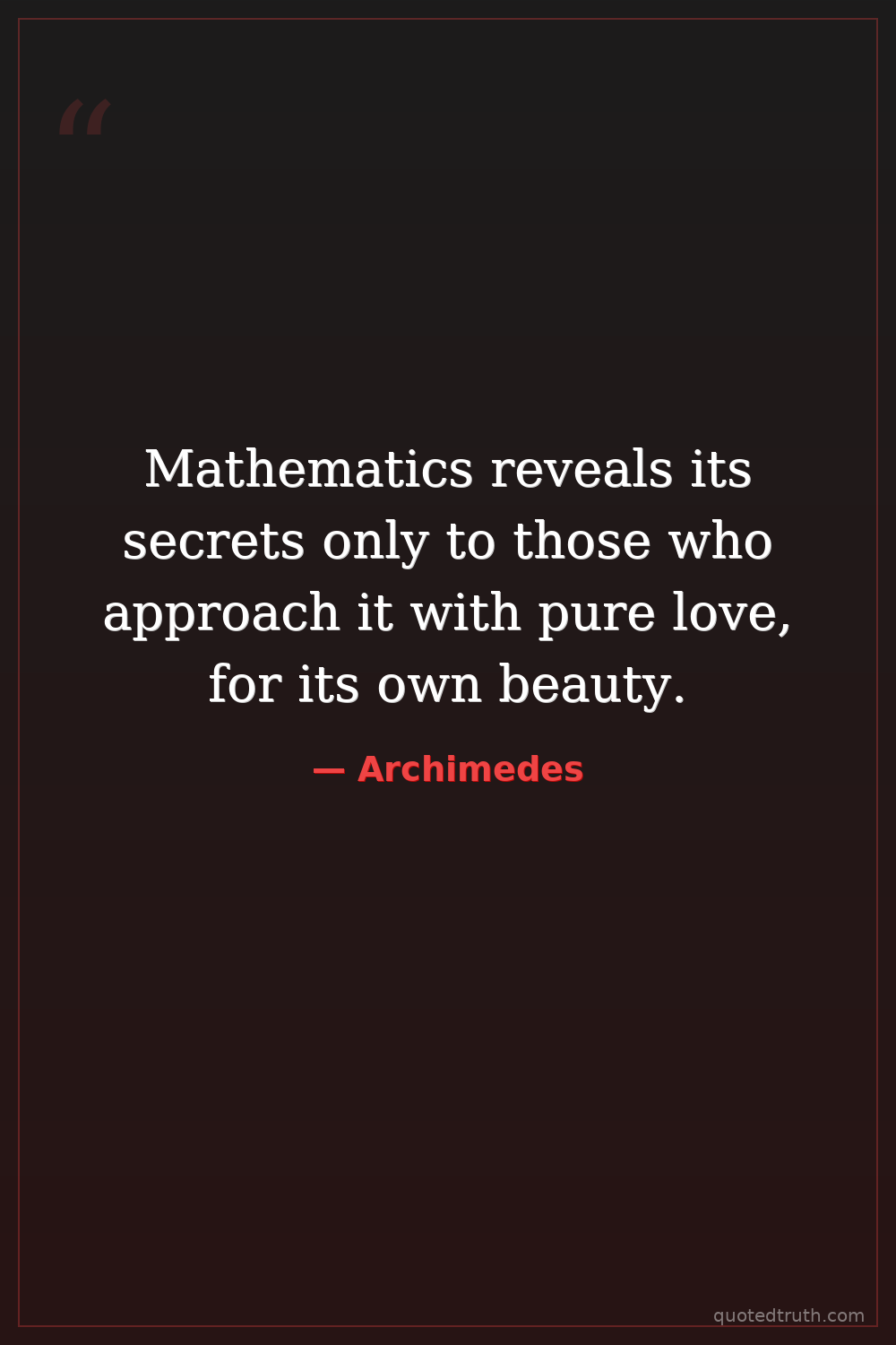 Mathematics reveals its secrets only to those who approach it with pure love, for its own beauty.