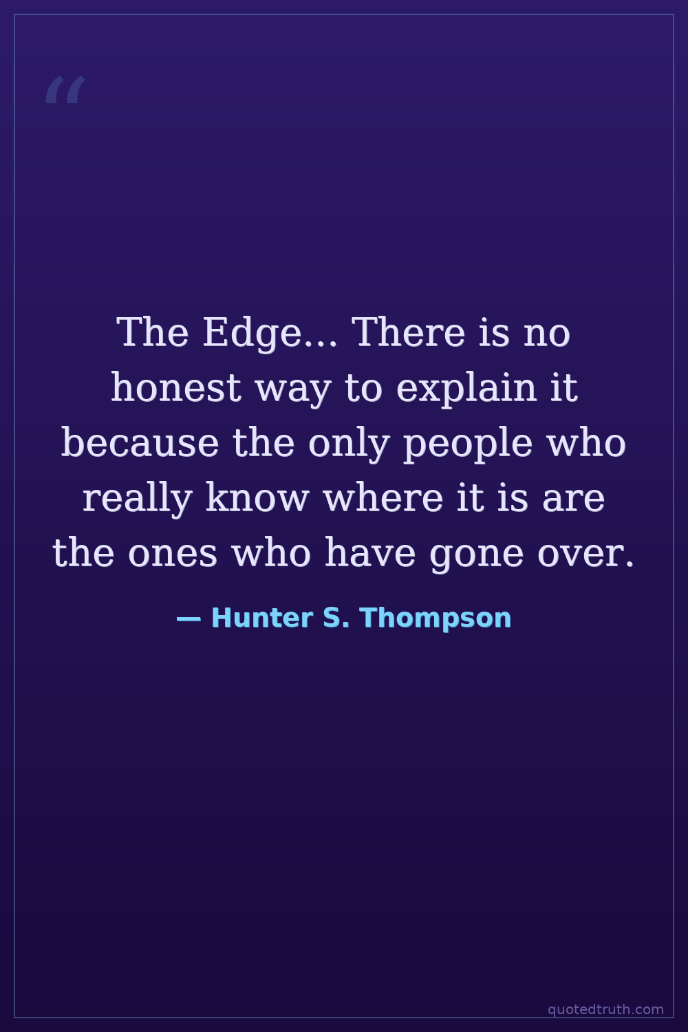 The Edge... There is no honest way to explain it because the only people who really know where it is are the ones who have gone over.