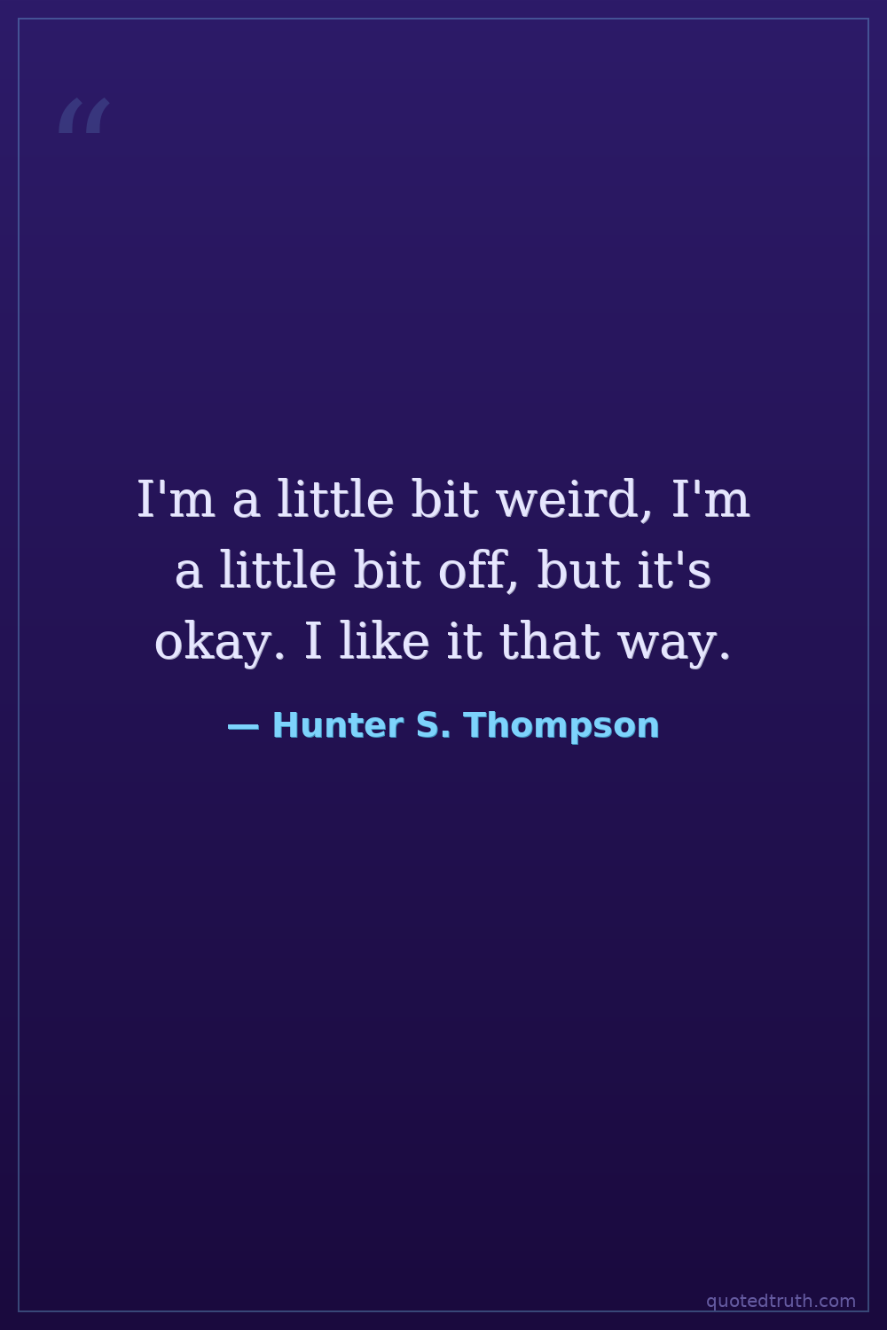 I'm a little bit weird, I'm a little bit off, but it's okay. I like it that way.