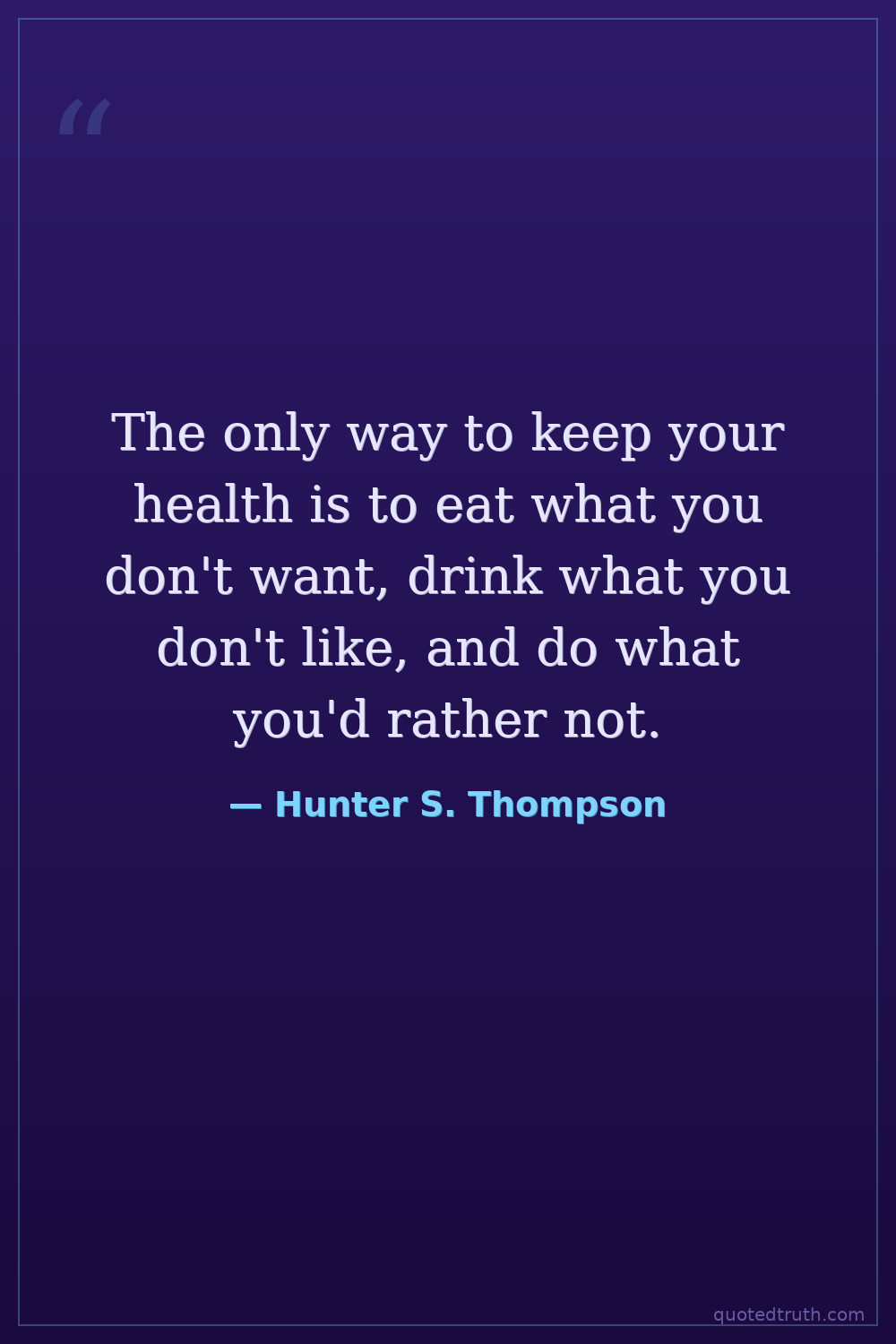 The only way to keep your health is to eat what you don't want, drink what you don't like, and do what you'd rather not.