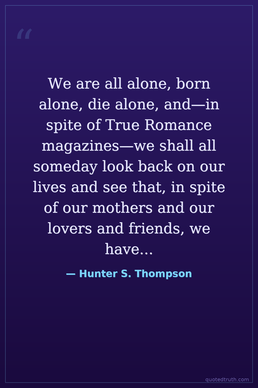 Hunter S. Thompson — "We are all alone, born alone, die alone, and—in spite of True Romance magazines—…"