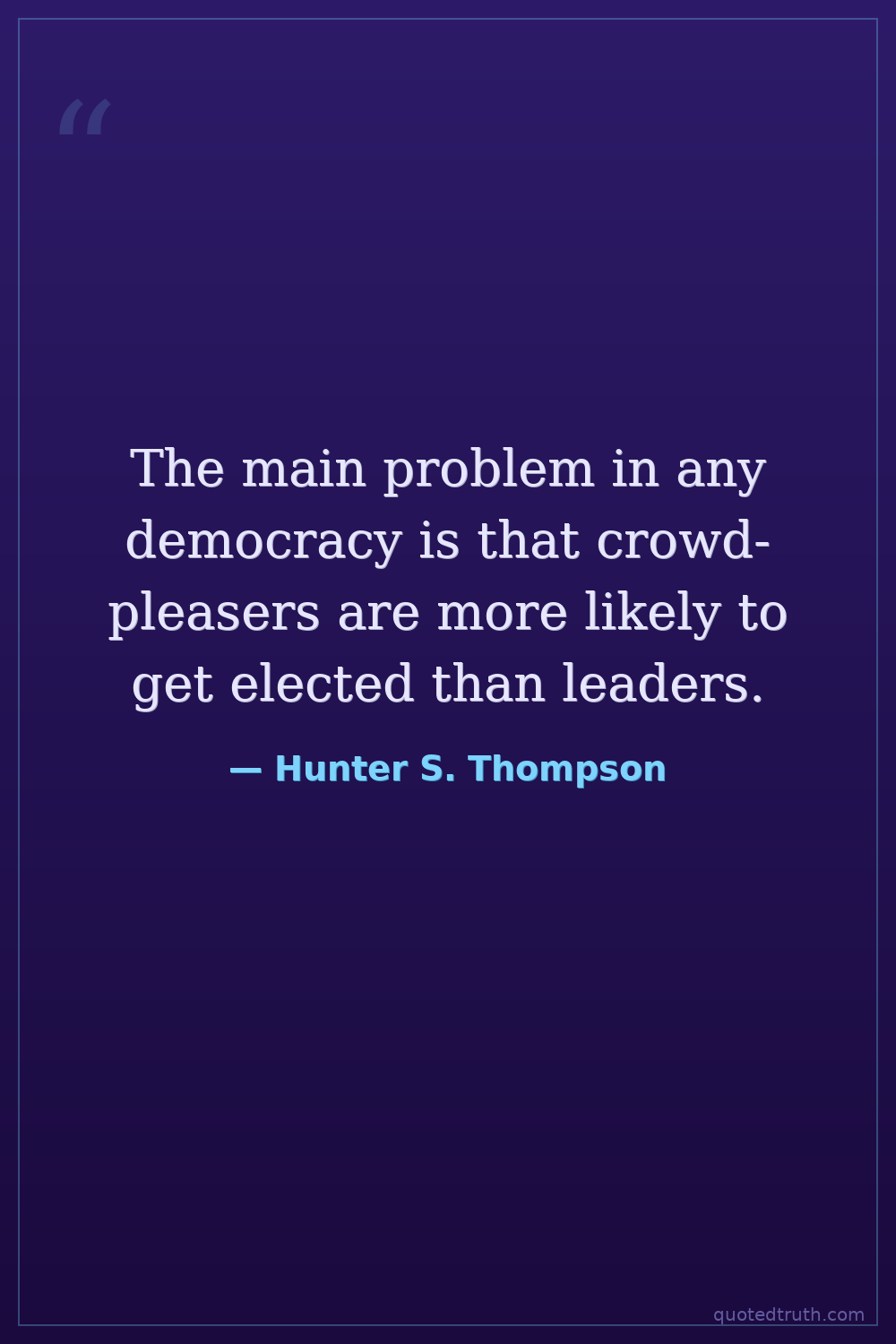 The main problem in any democracy is that crowd-pleasers are more likely to get elected than leaders.