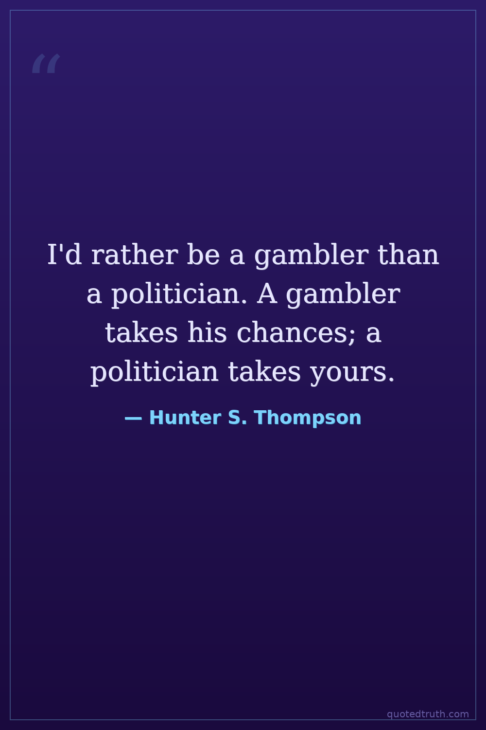 I'd rather be a gambler than a politician. A gambler takes his chances; a politician takes yours.