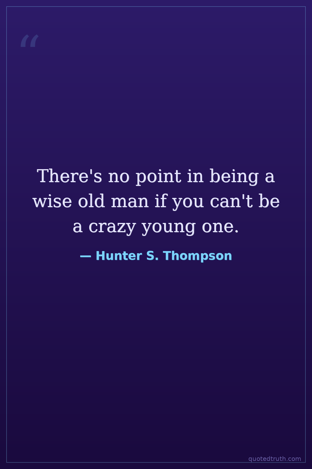 There's no point in being a wise old man if you can't be a crazy young one.