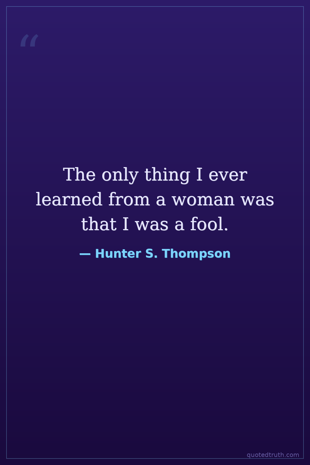 The only thing I ever learned from a woman was that I was a fool.