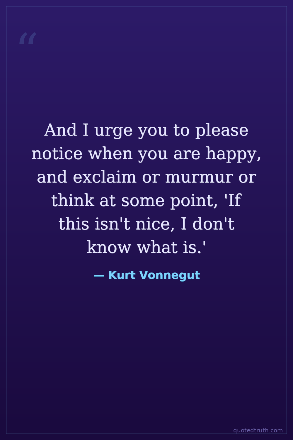 And I urge you to please notice when you are happy, and exclaim or murmur or think at some point, 'If this isn't nice, I don't know what is.'