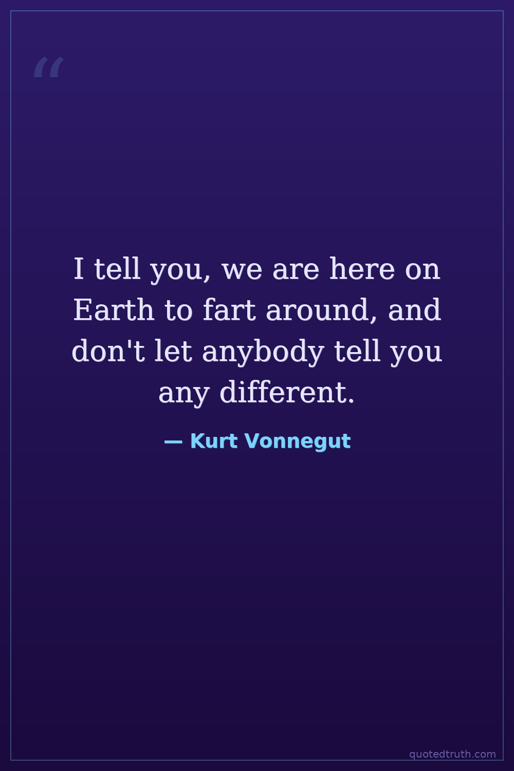 I tell you, we are here on Earth to fart around, and don't let anybody tell you any different.