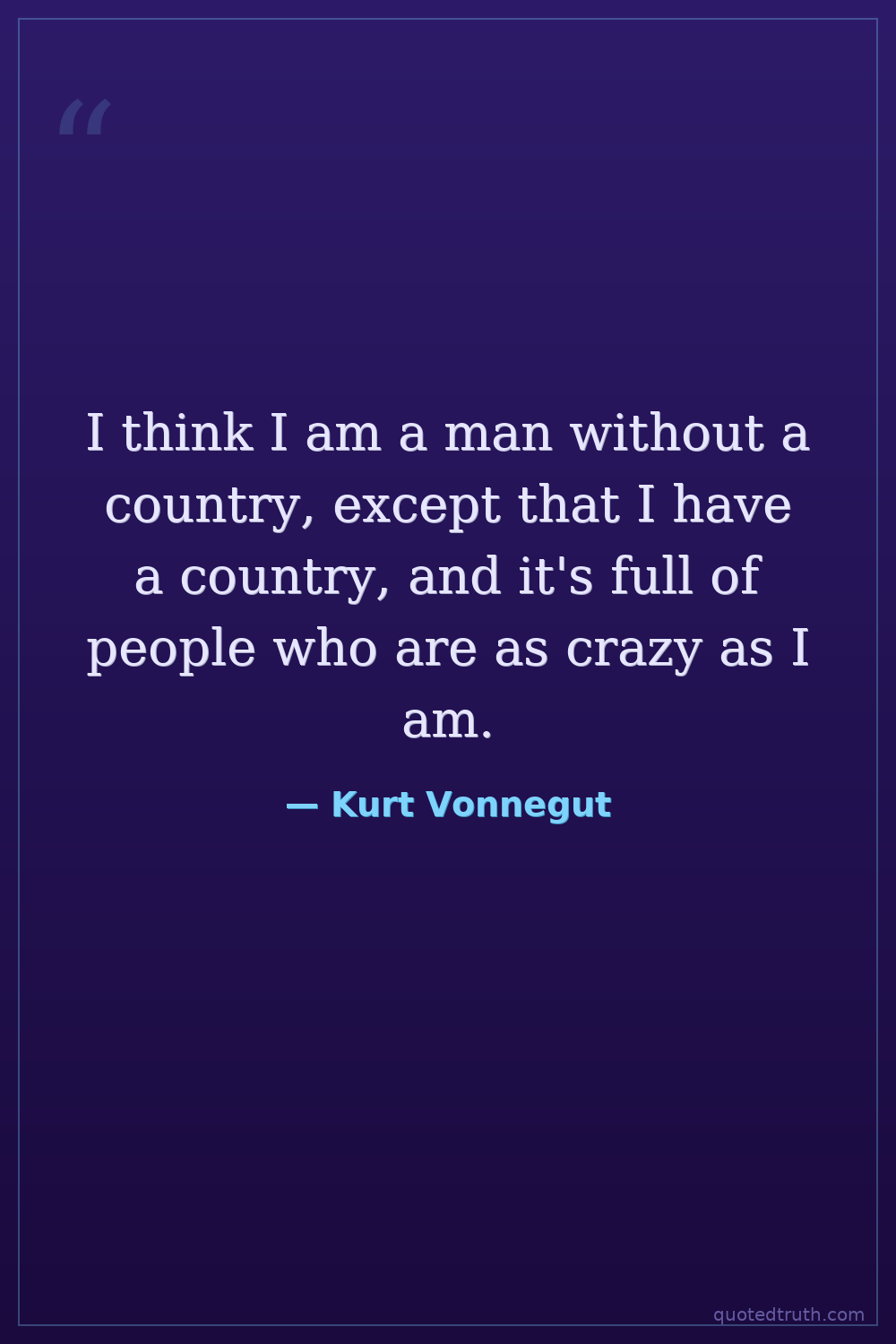 I think I am a man without a country, except that I have a country, and it's full of people who are as crazy as I am.