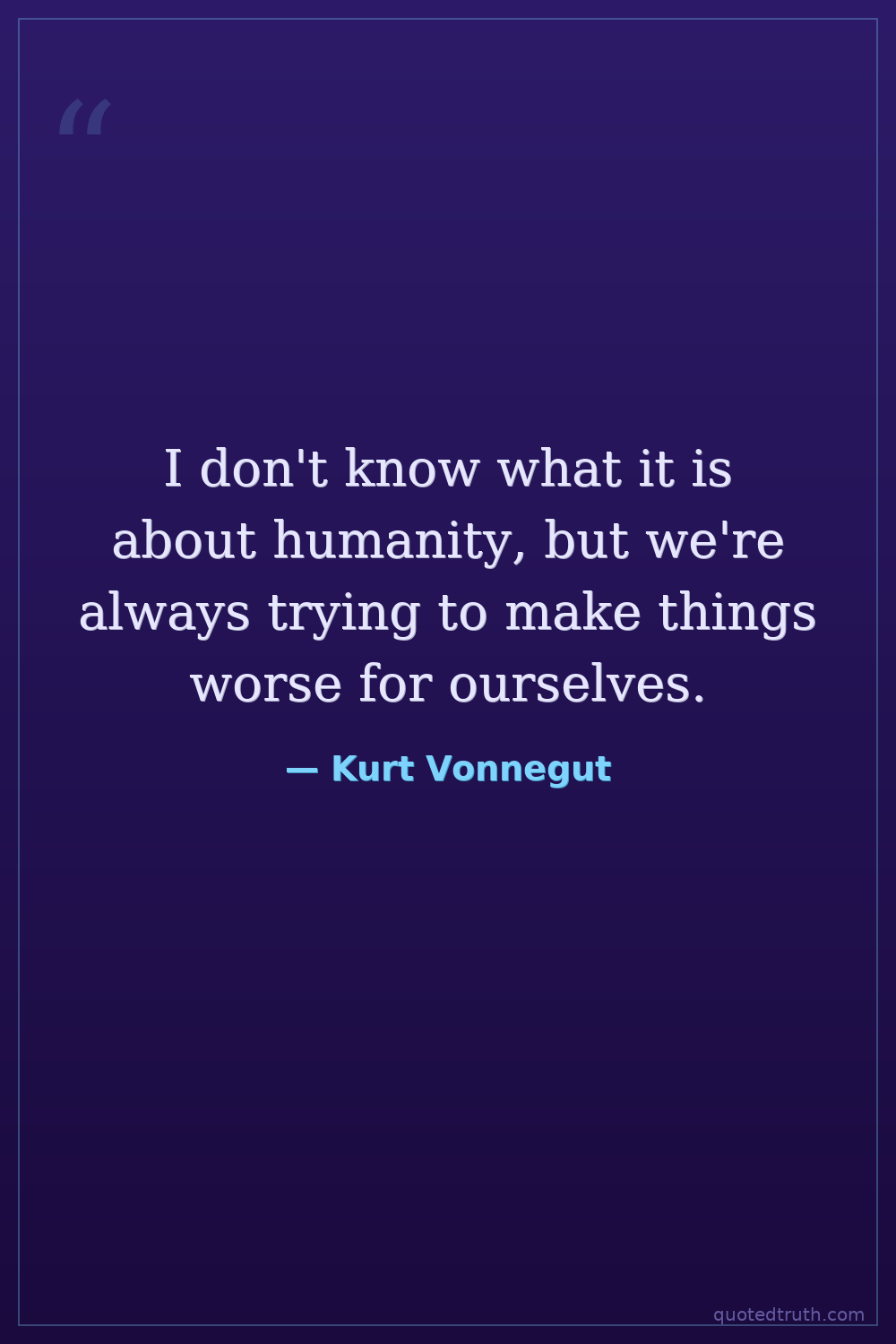 I don't know what it is about humanity, but we're always trying to make things worse for ourselves.