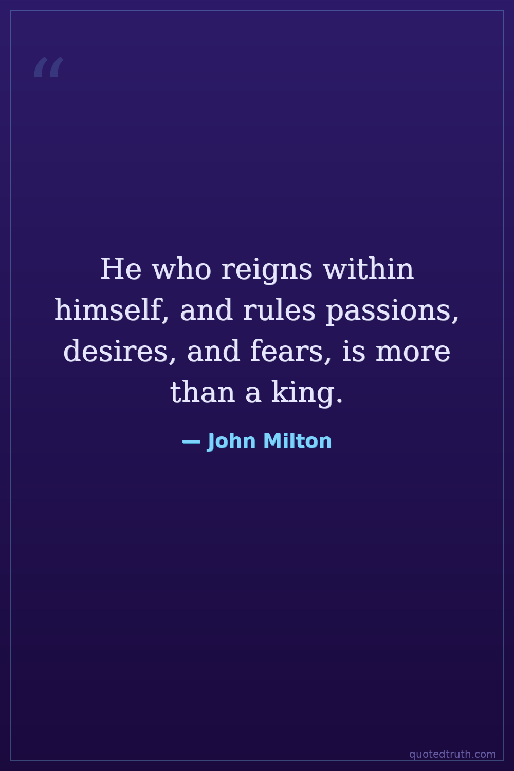 He who reigns within himself, and rules passions, desires, and fears, is more than a king.