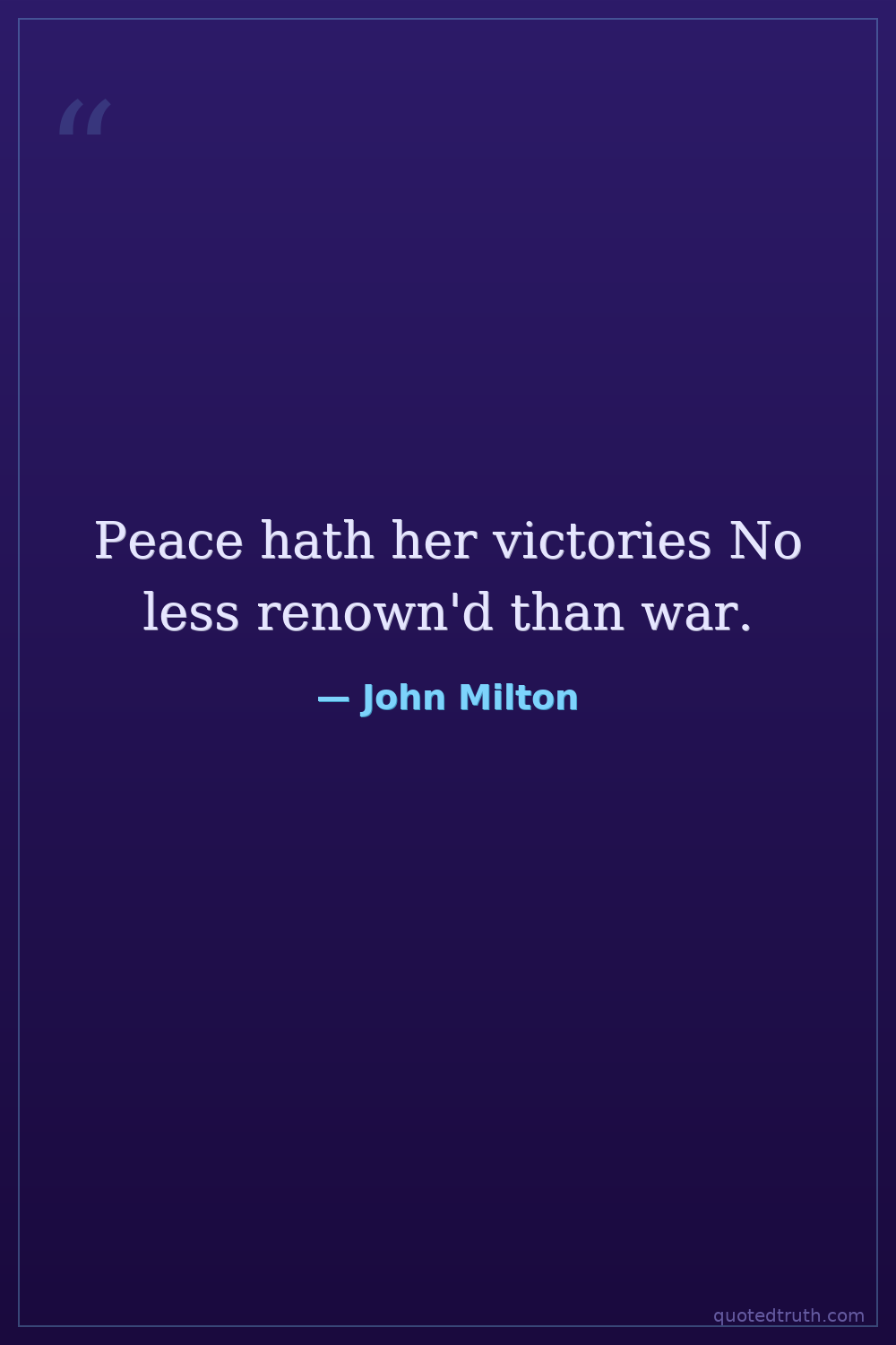 Peace hath her victories No less renown'd than war.