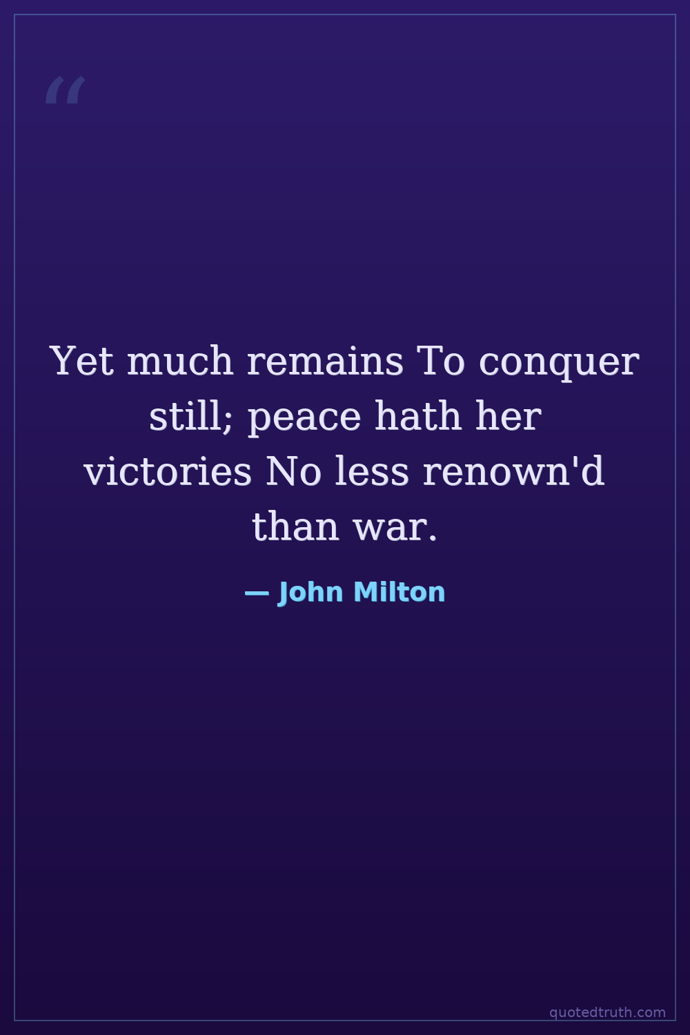 Yet much remains To conquer still; peace hath her victories No less renown'd than war.