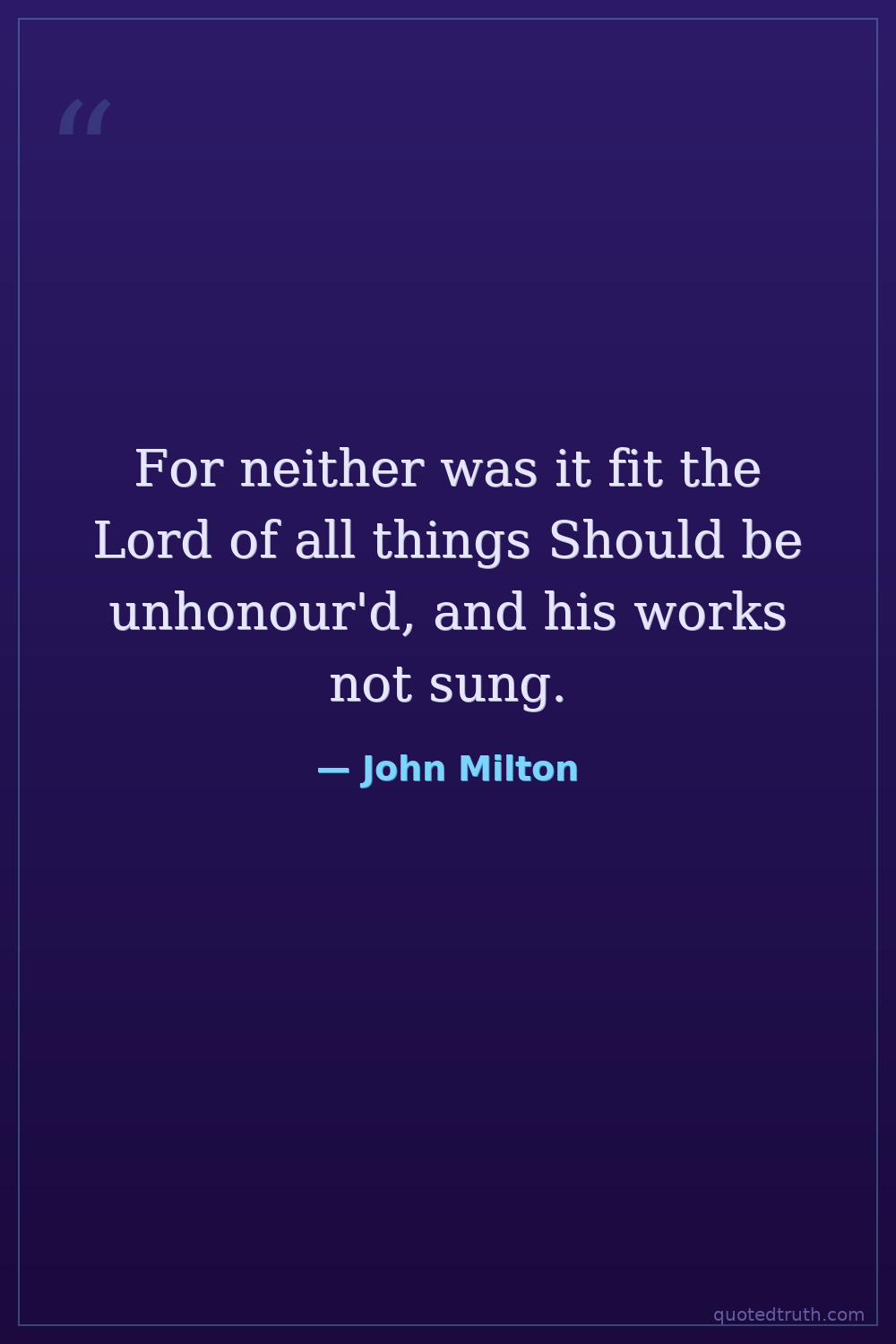 For neither was it fit the Lord of all things Should be unhonour'd, and his works not sung.