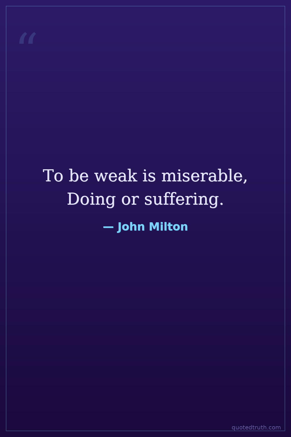 To be weak is miserable, Doing or suffering.