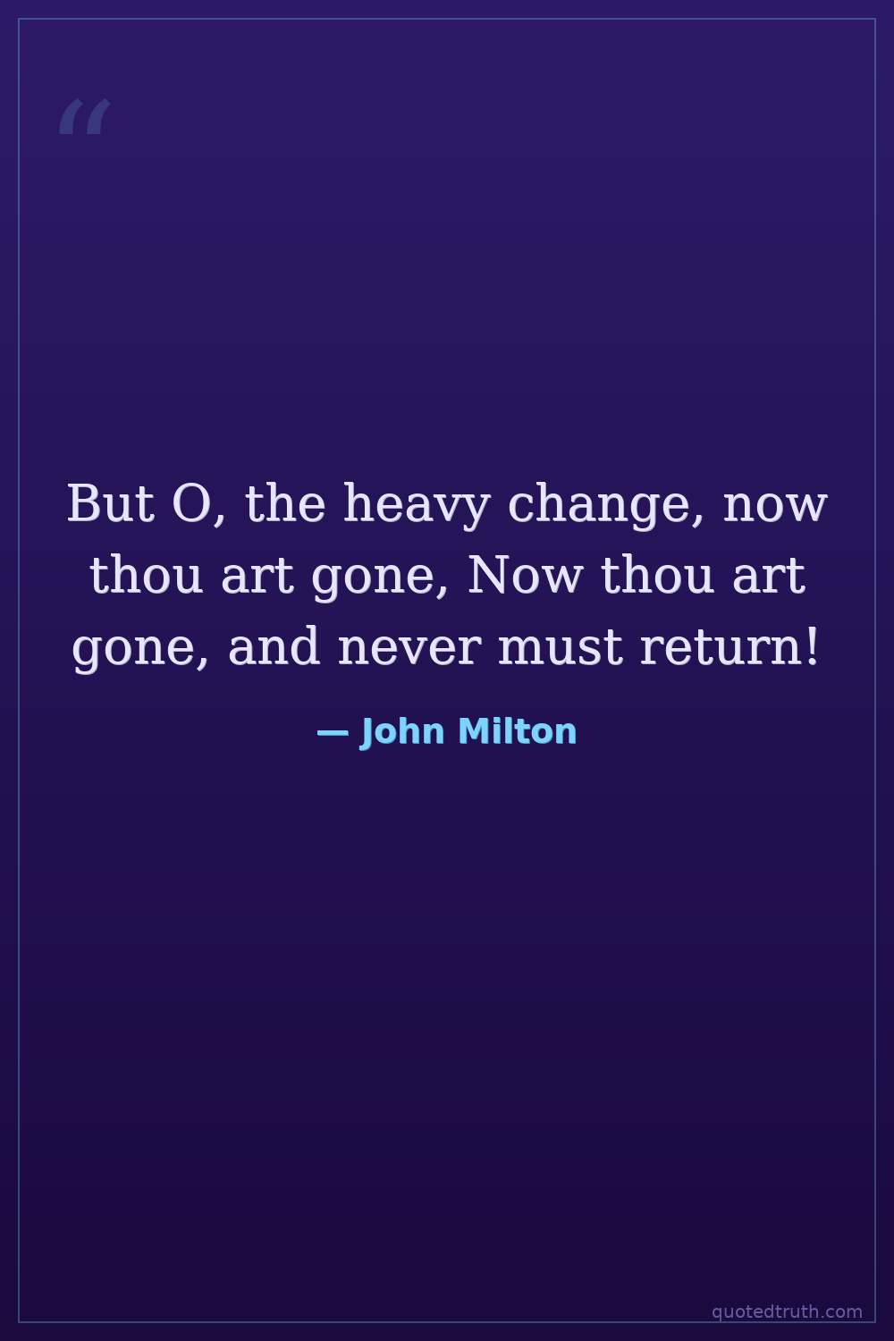 But O, the heavy change, now thou art gone, Now thou art gone, and never must return!