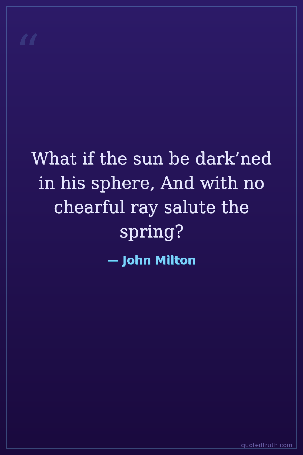What if the sun be dark’ned in his sphere, And with no chearful ray salute the spring?