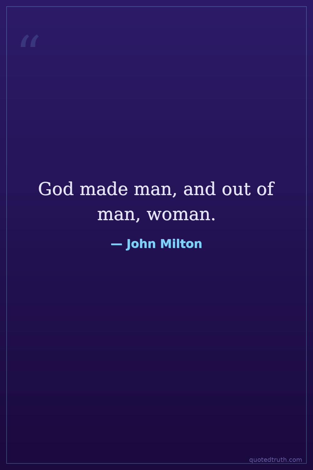 God made man, and out of man, woman.