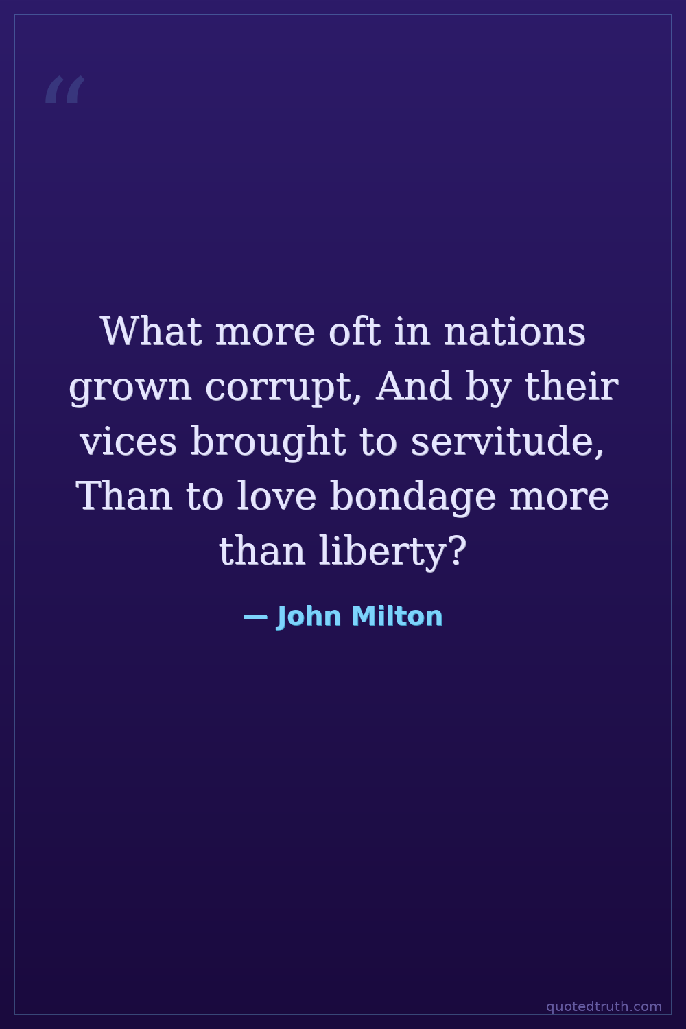 What more oft in nations grown corrupt, And by their vices brought to servitude, Than to love bondage more than liberty?