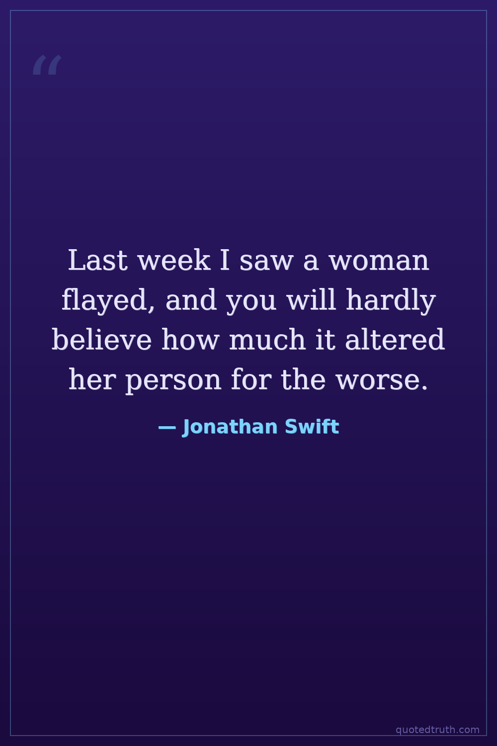 Last week I saw a woman flayed, and you will hardly believe how much it altered her person for the worse.
