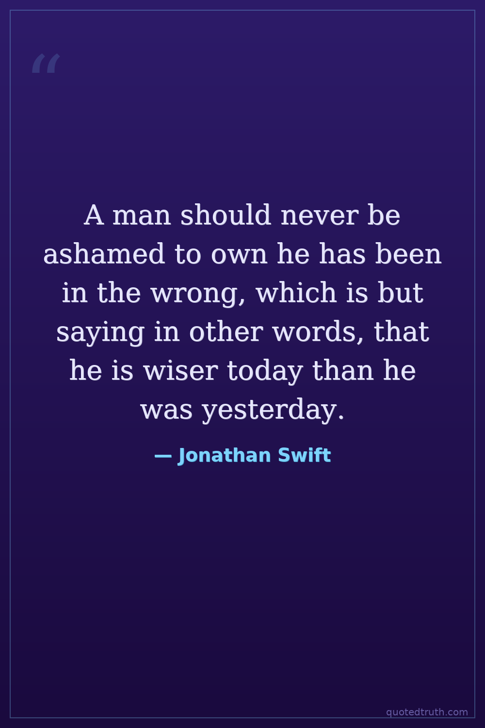 A man should never be ashamed to own he has been in the wrong, which is but saying in other words, that he is wiser today than he was yesterday.