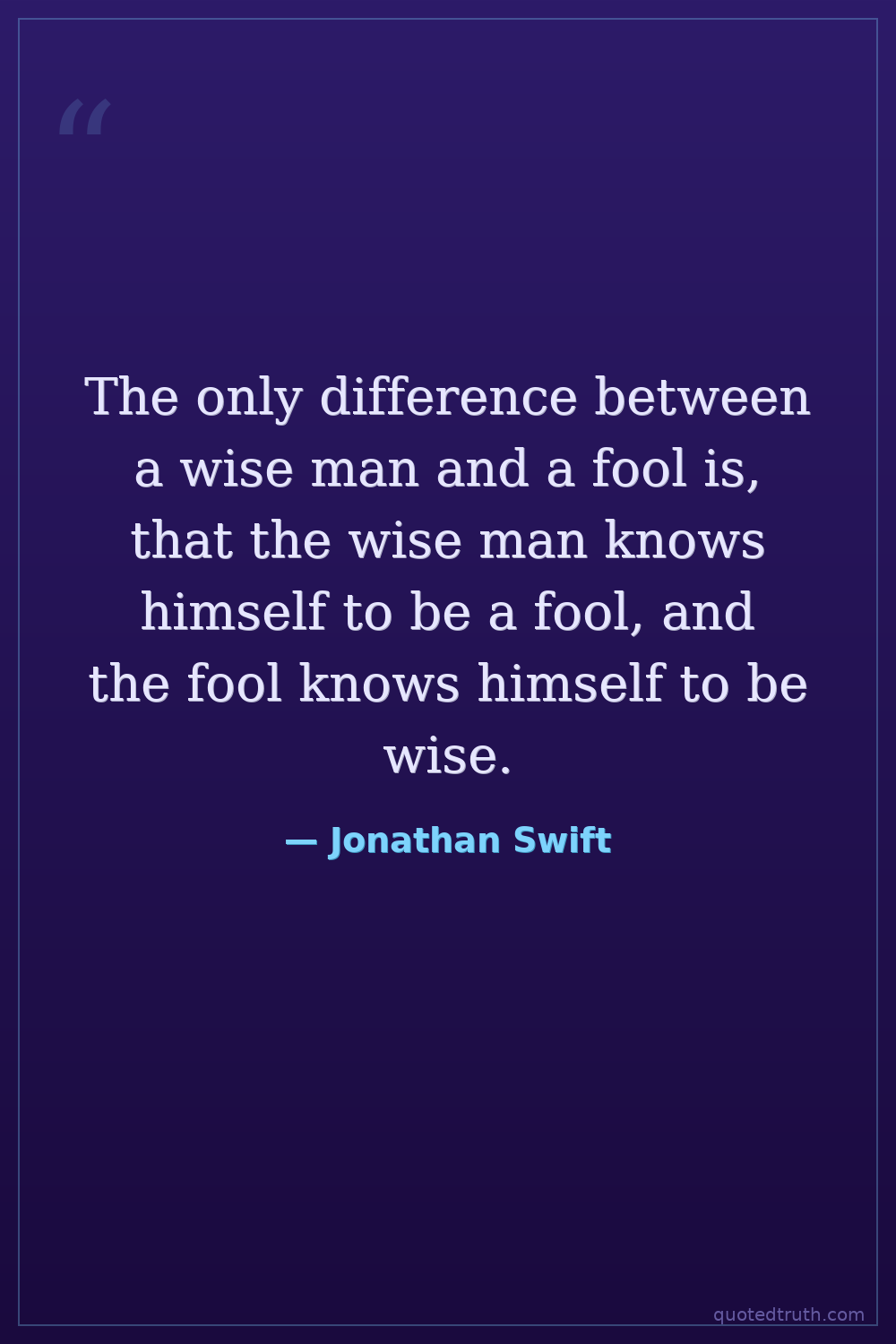 The only difference between a wise man and a fool is, that the wise man knows himself to be a fool, and the fool knows himself to be wise.