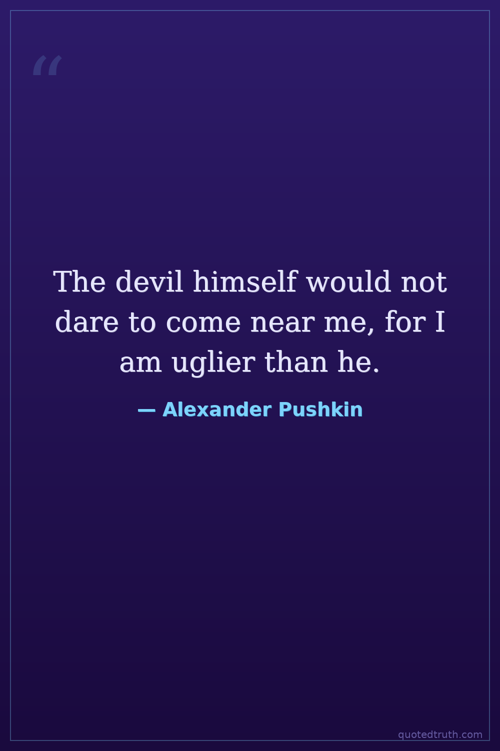 The devil himself would not dare to come near me, for I am uglier than he.