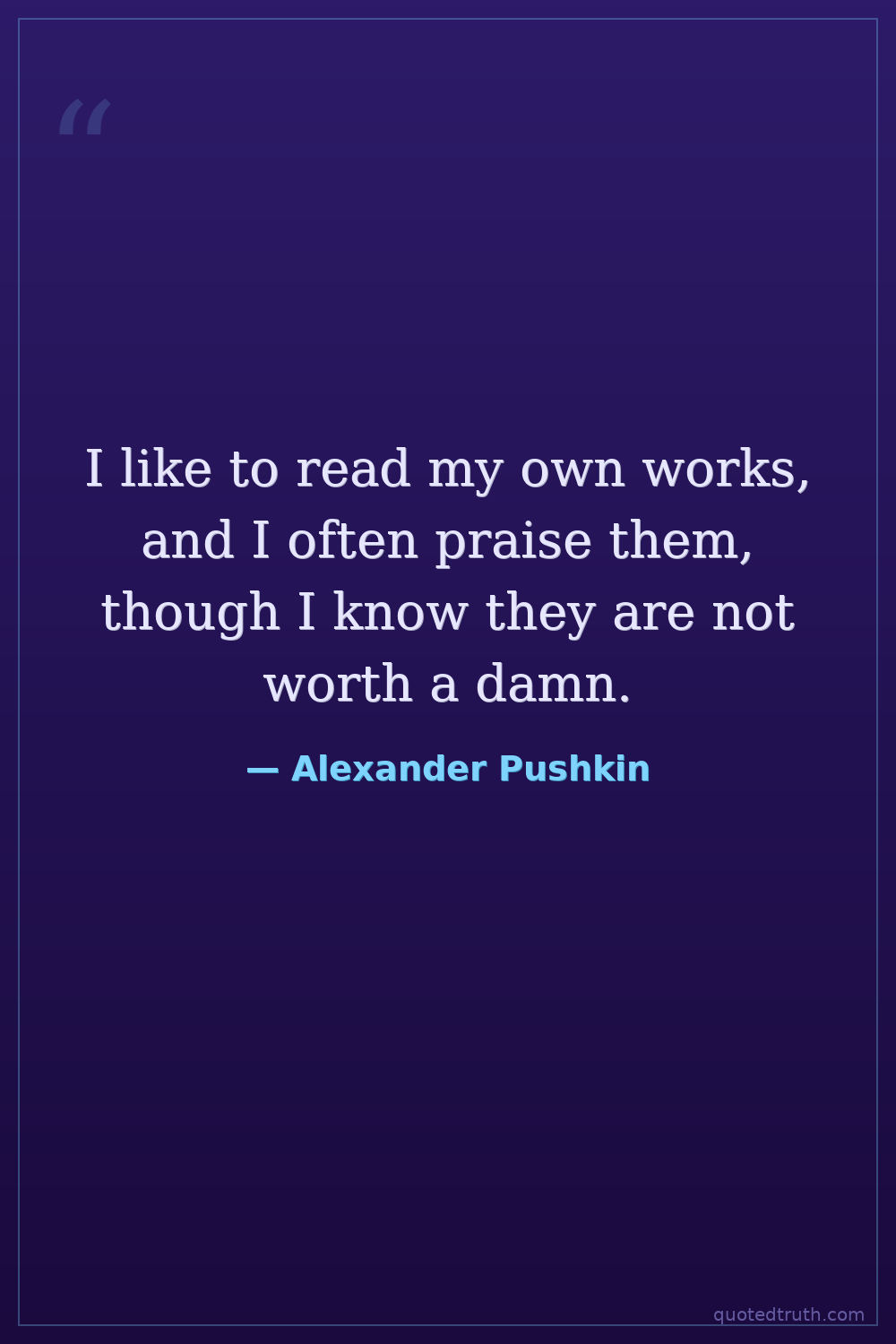 I like to read my own works, and I often praise them, though I know they are not worth a damn.