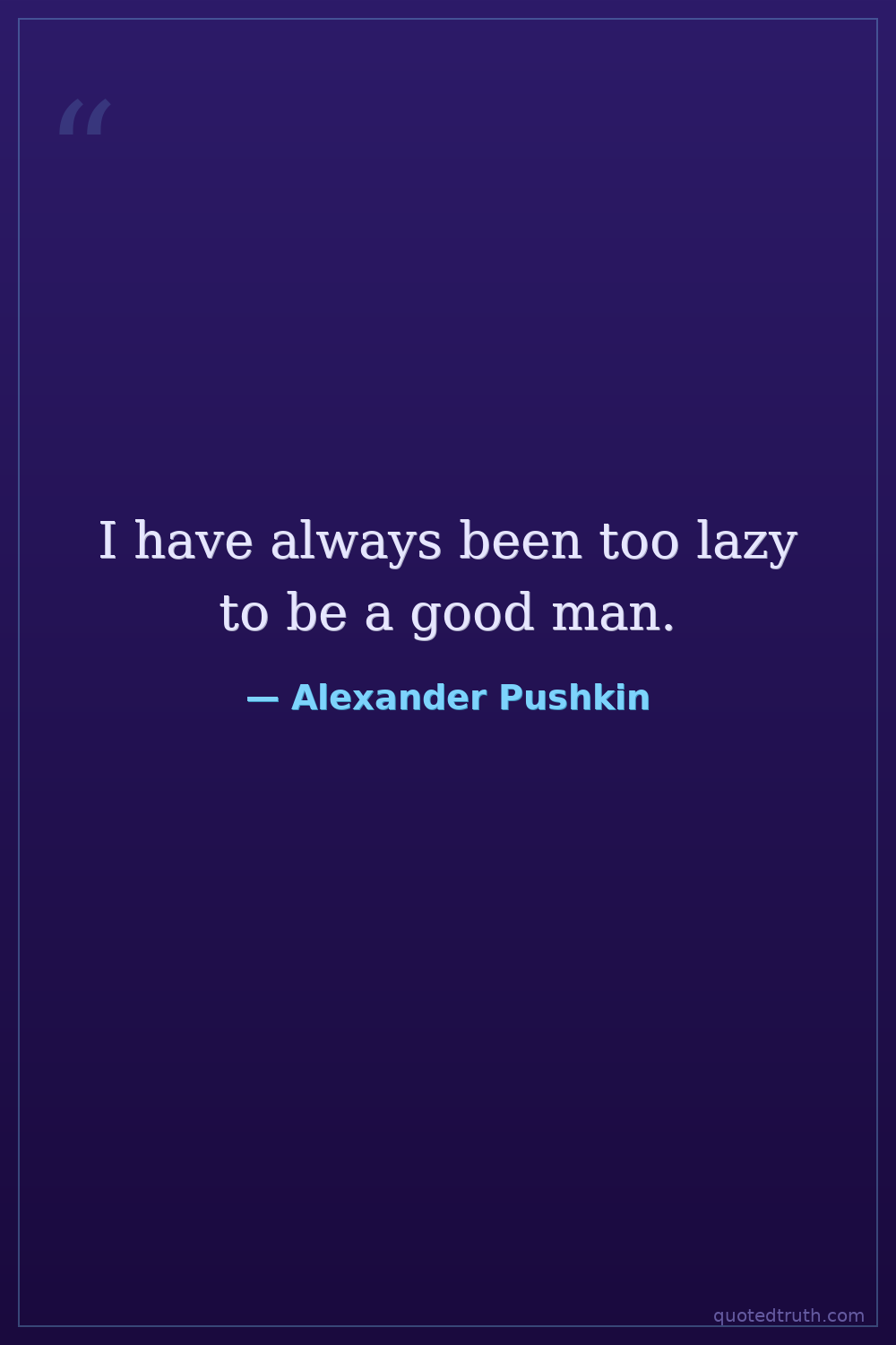 I have always been too lazy to be a good man.