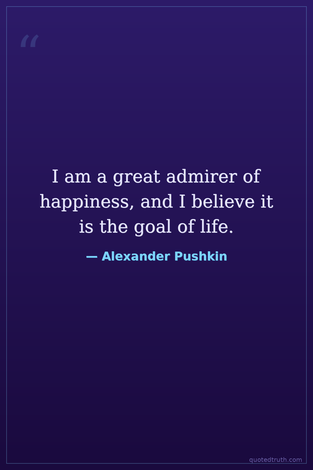 I am a great admirer of happiness, and I believe it is the goal of life.