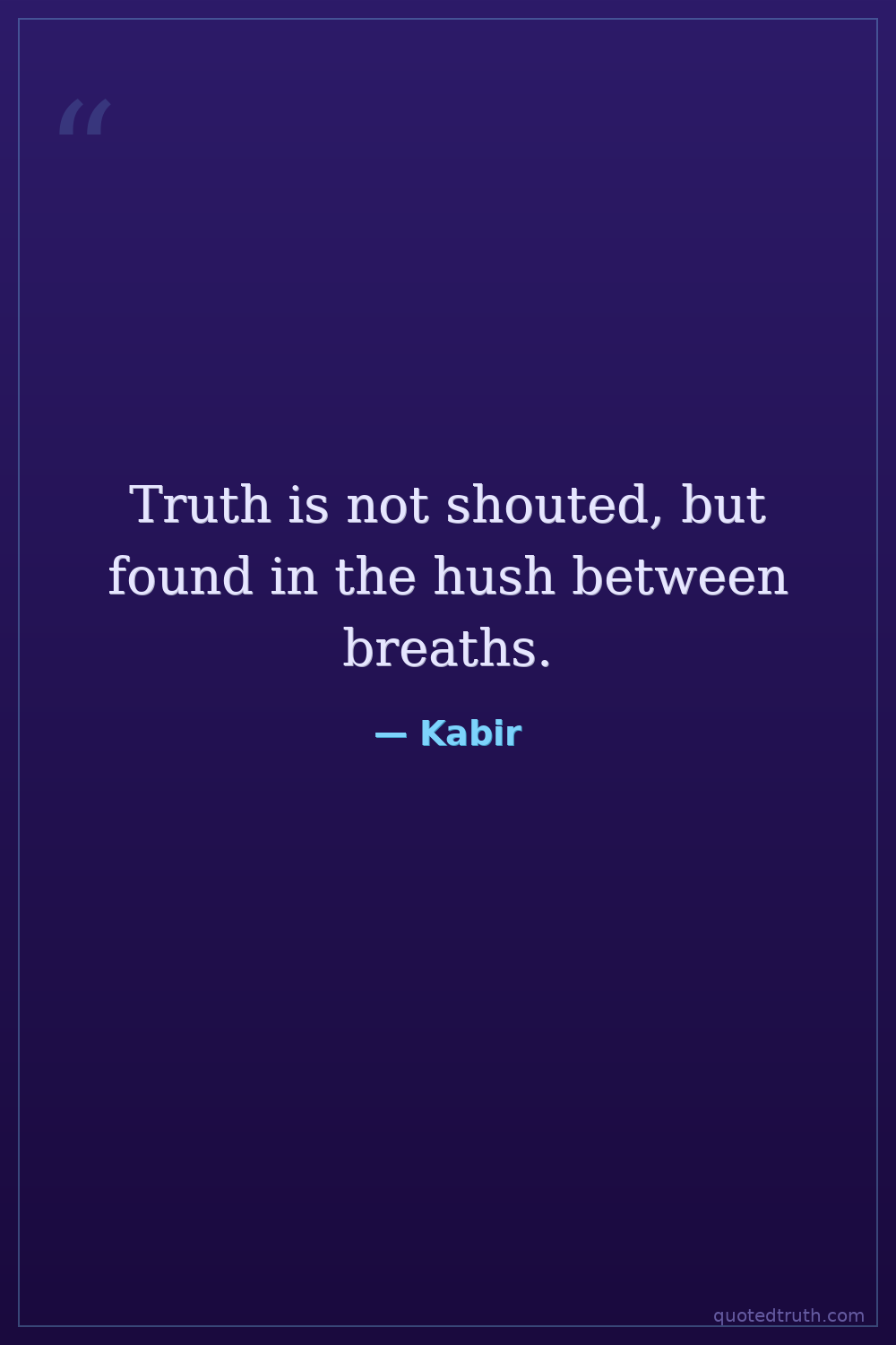 Truth is subtle and found in stillness, not external noise, from his poetry (Dohas).