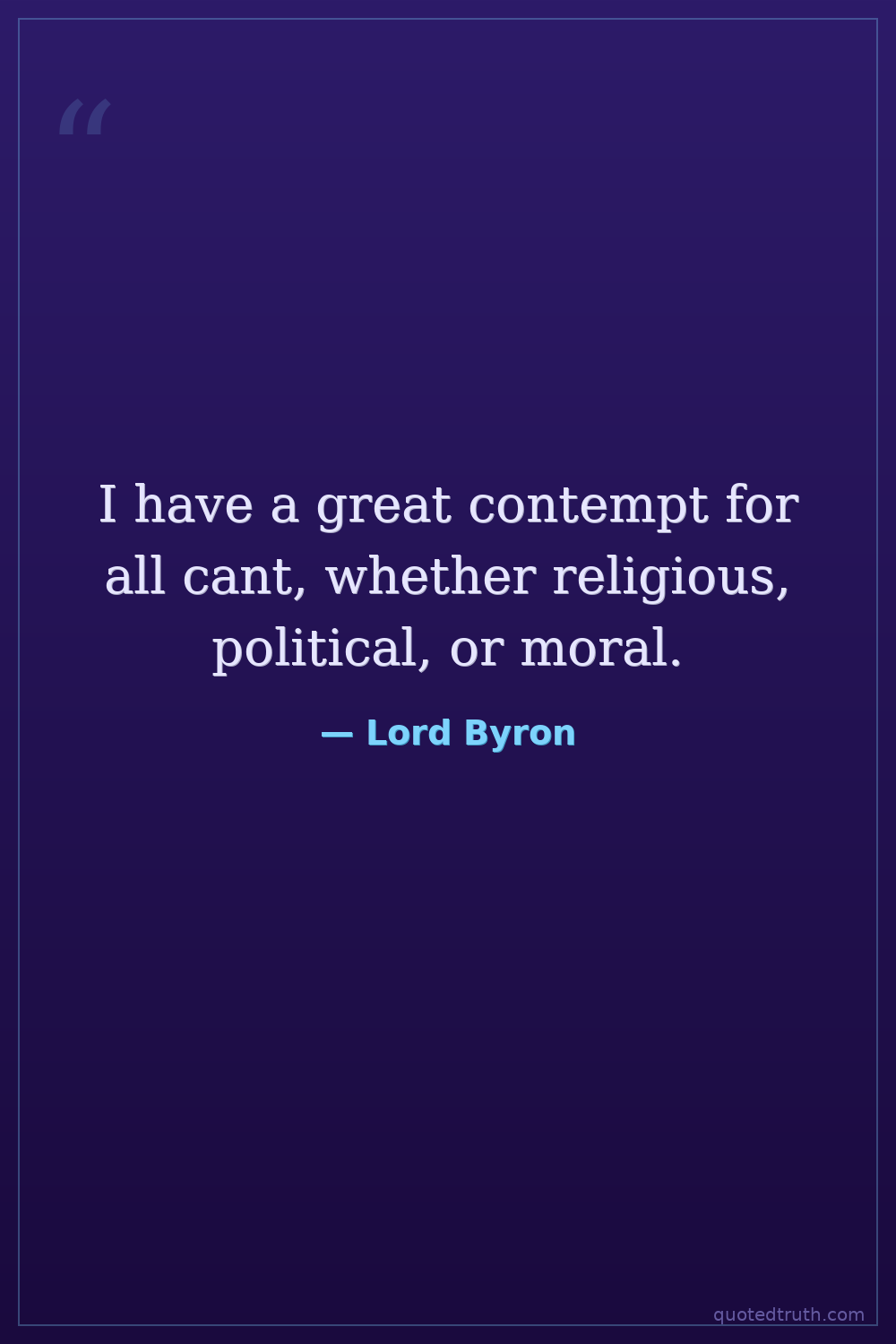 I have a great contempt for all cant, whether religious, political, or moral.