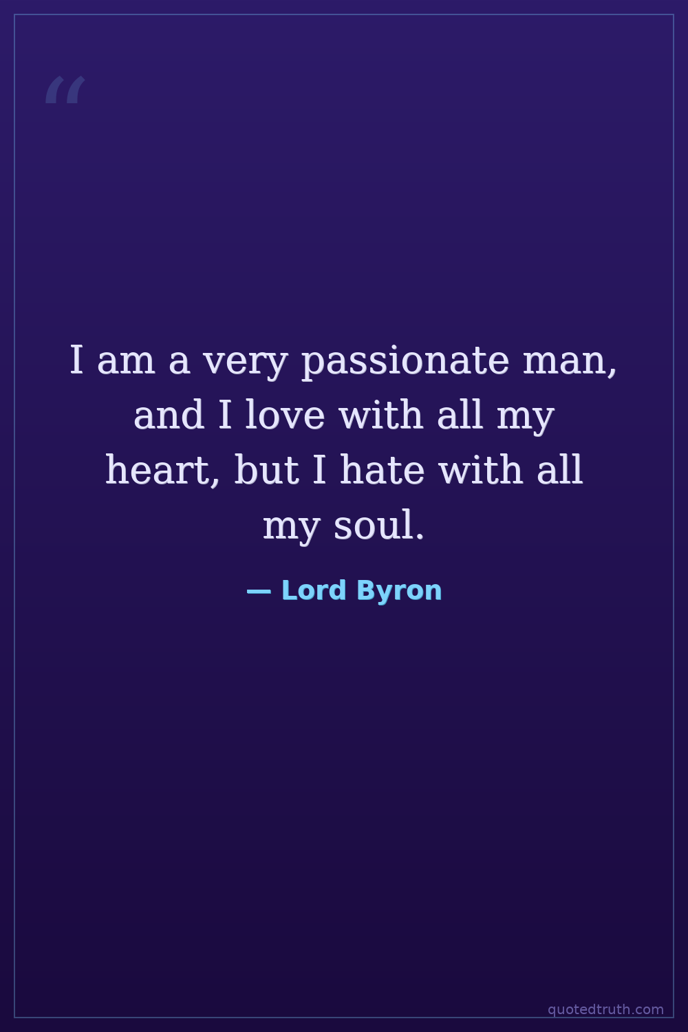 I am a very passionate man, and I love with all my heart, but I hate with all my soul.