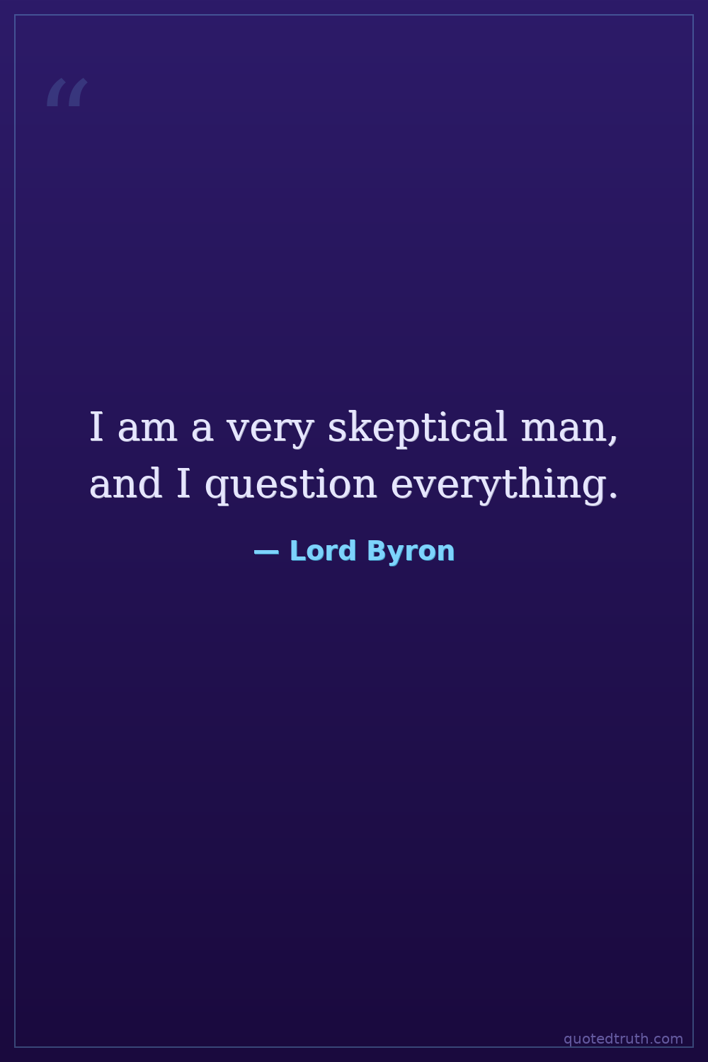 I am a very skeptical man, and I question everything.