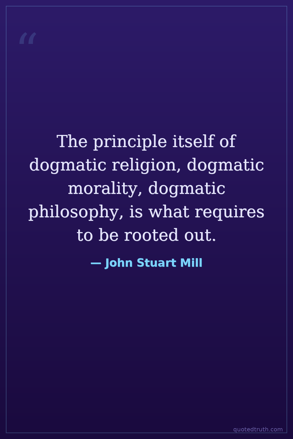 The principle itself of dogmatic religion, dogmatic morality, dogmatic philosophy, is what requires to be rooted out.