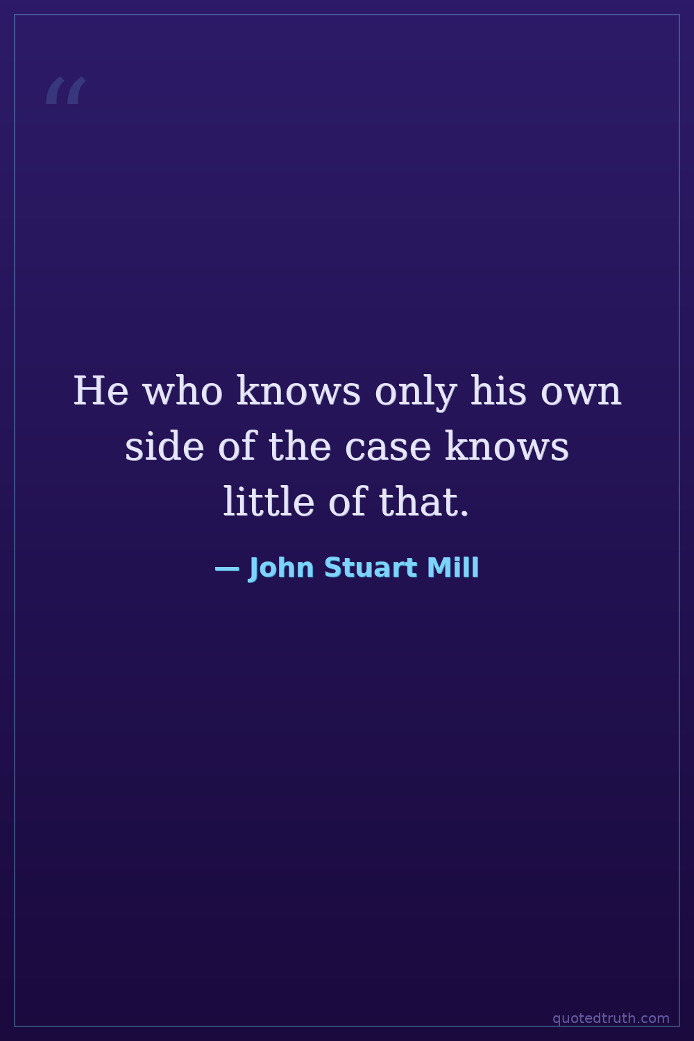 He who knows only his own side of the case knows little of that.