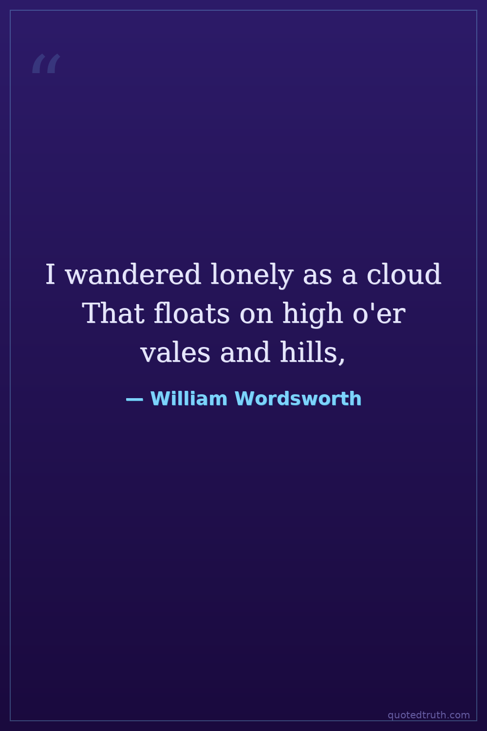 I wandered lonely as a cloud That floats on high o'er vales and hills,