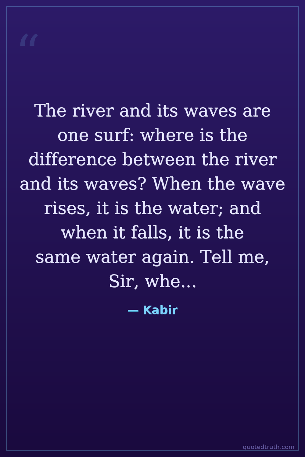 The river and its waves are one surf: where is the difference between the river and its waves? When the wave rises, it is the water; and when it falls, it is the same water again. Tell me, Sir, where is the distinction? Because it has been named as wave, shall it no longer be considered as water?