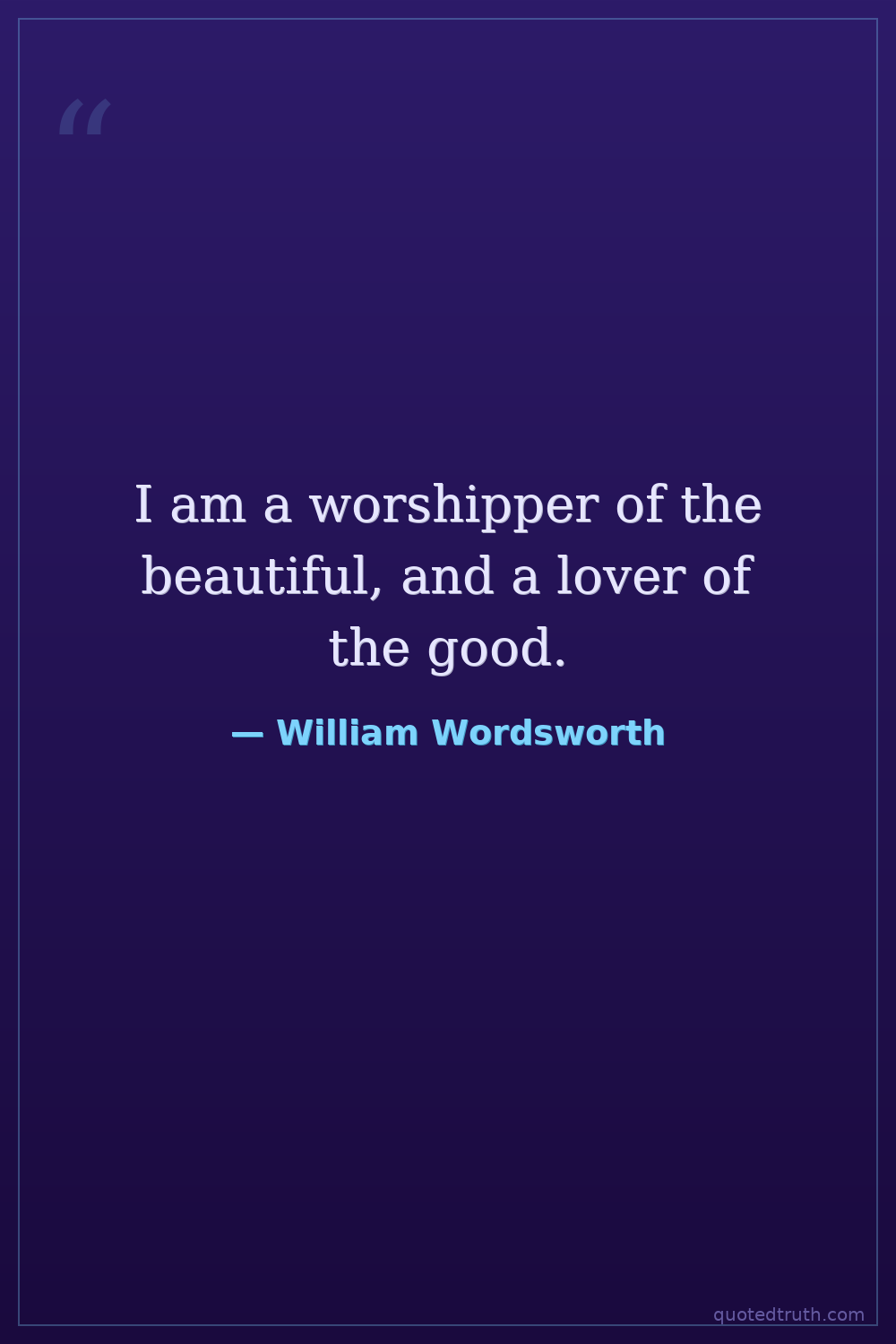 I am a worshipper of the beautiful, and a lover of the good.