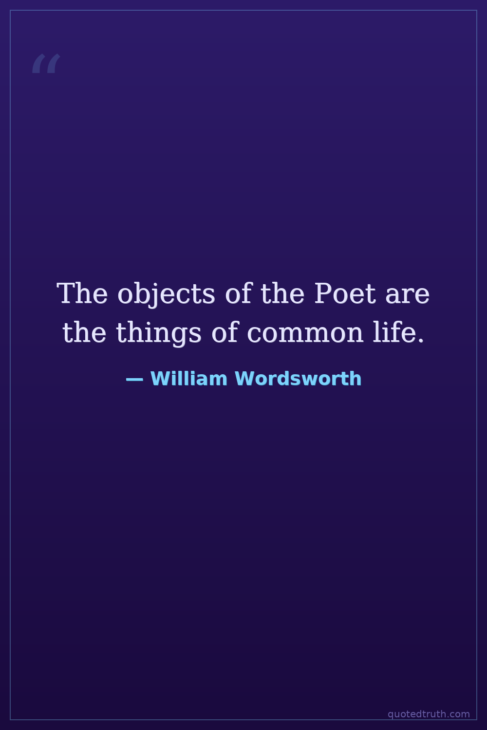 The objects of the Poet are the things of common life.