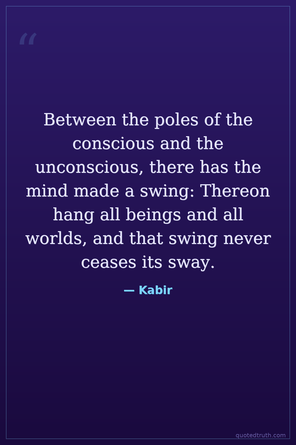 Between the poles of the conscious and the unconscious, there has the mind made a swing: Thereon hang all beings and all worlds, and that swing never ceases its sway.