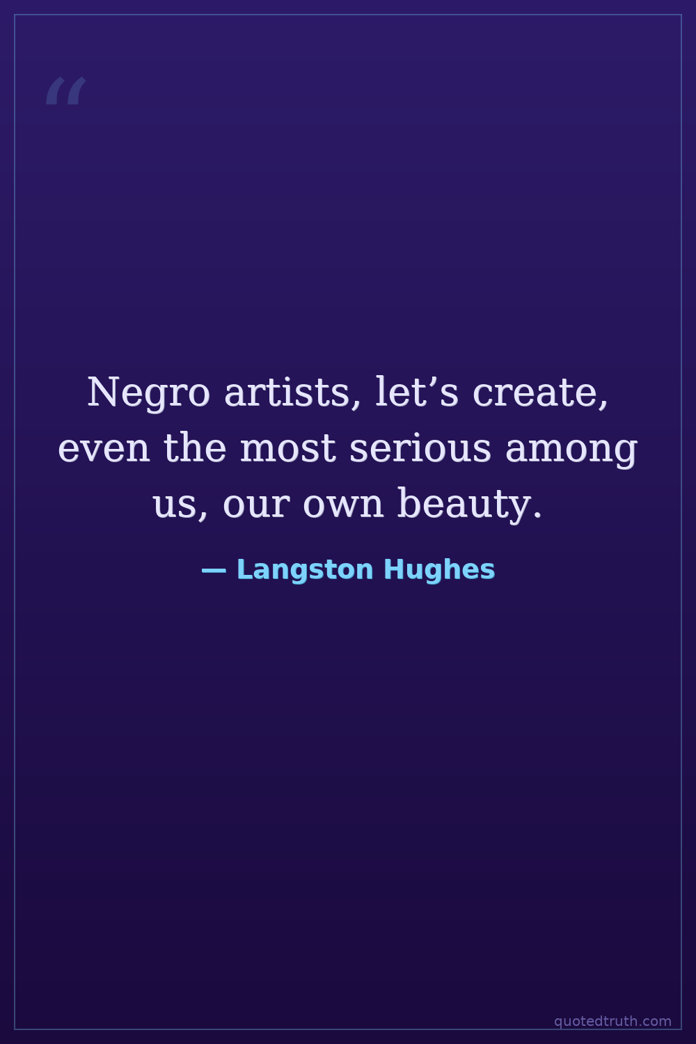 Negro artists, let’s create, even the most serious among us, our own beauty.